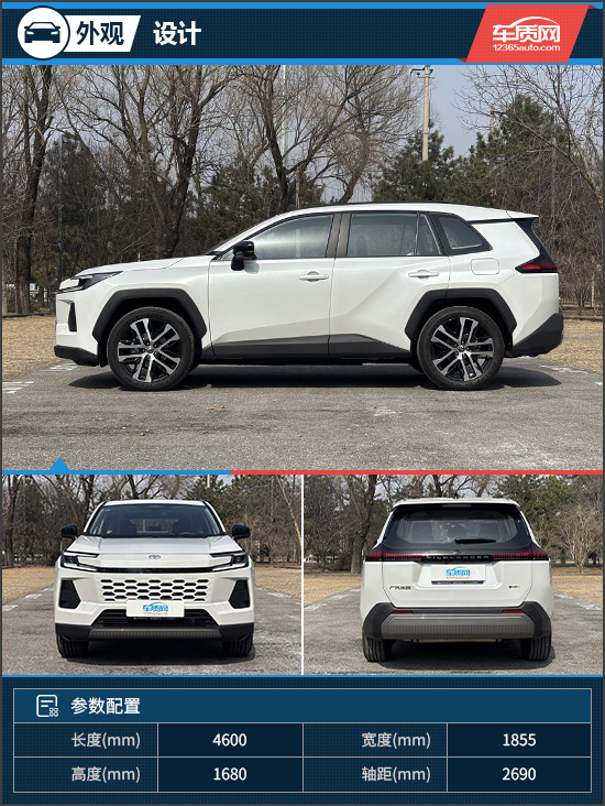 评测车延续家族“锤头鲨”设计语言,车头造型厚重有力,C型全LED智能前大灯与六边形缎状铬前格栅相融合,整体感较强,前杠两侧造型与前大灯形成呼应,视觉张力突出。同时,其配备主动闭合式进气格栅,可根据工况调节开合状态,以辅助发动机保持合适的工作温度。