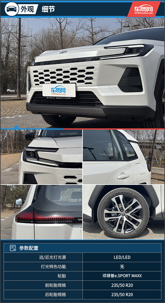 车身侧面采用黑色包围搭配锐利的腰线,力量感营造到位。车门为全包覆结构,有助于减少上下车时弄脏裤腿的情况。车尾采用全新样式设计,WILDLANDER字标嵌入贯穿式钢琴黑组合尾灯,辨识度较高。下方为隐藏式排气布局,使整体观感更加简洁。此外,评测车配备20英寸切削铝合金轮毂,造型偏硬朗风格。匹配的邓禄普e.SPORT MAXX系列轮胎,在能耗控制、湿地抓地力以及静音性方面均有不俗表现。