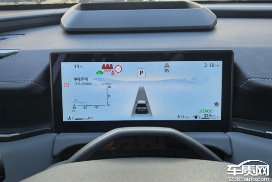 评测车具备HUD抬头数字显示功能,支持位置、亮度、内容调节,除挡位、车速以外,还会显示道路限速,方便驾驶者查看车辆信息。