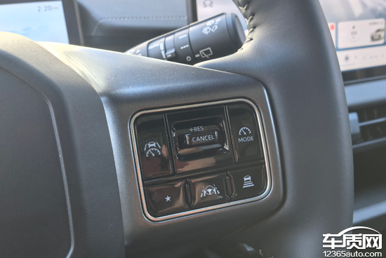 方向盘多功能区域采用按键式设计,按压手感细腻,操作位置合理,响应也很灵敏。方向盘右侧具备辅助驾驶系统调节功能,并设置有自定义功能按键,可以便捷操作电话、导航等功能;左侧可调整媒体音量、语音、仪表菜单。