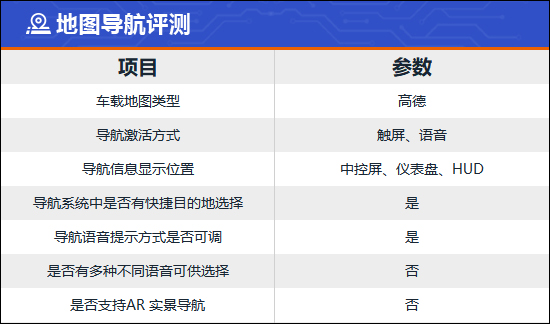 评测车具备HUD抬头数字显示功能,支持高度、亮度和角度调节,除时间、车速、限速标识外,开启导航时的路线也会同步至画面当中,并且具有雪地模式,方便驾驶者查看。