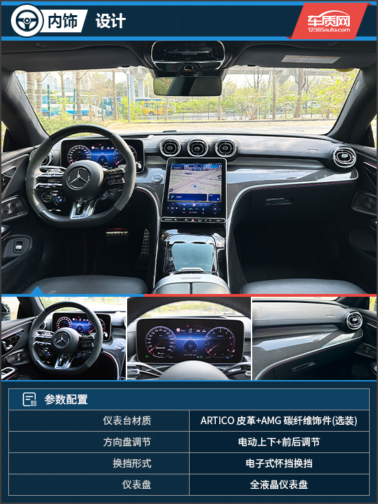 内饰方面,评测车采用了家族式设计风格,无论是内饰用料还是豪华感的营造都无可挑剔,这也是奔驰品牌的传统优势。此外,Nappa皮质包裹的AMG高性能方向盘,握感十分舒适,并且两侧还辅以翻毛皮材质,再搭配选装的AMG碳纤维饰件,令整个内饰充满战斗气息。