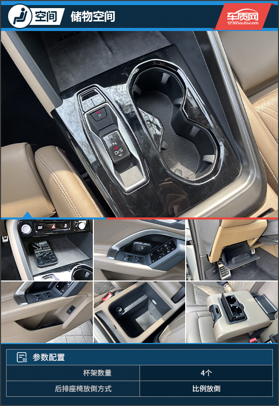 评测车针对中国市场进行了轴距加长,带来了足够充裕的乘坐空间。同时,后排座椅支持前后及靠背角度调节,可满足不同乘客的坐姿需求,整体表现较为周到。不过,由于标配四驱系统,后排地板中央凸起偏高,会对中间乘客的乘坐舒适性产生一定影响。