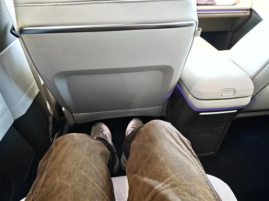 前两排乘坐体验不错,空间比较宽敞,座椅很舒适,面料和填充都可以说优秀,前排门板上还有致敬帕萨特领驭的、带排水口的“隐藏式雨伞盒”,中央扶手也很宽适,二排甚至配备了可收折的外侧扶手。除左后座以外的其他三个座位都带零重力模式,很适合休息,座椅按摩也能全面覆盖身体。