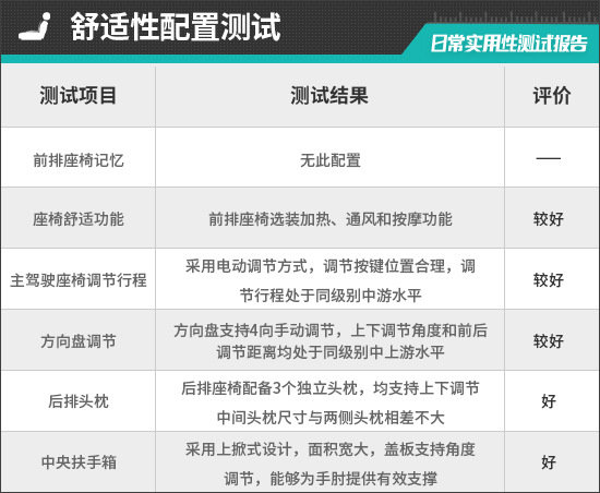 在主驾驶座椅测试中,评测车的主驾驶座椅最前端和最末端之间的距离为250mm,处于同级别中游水平。