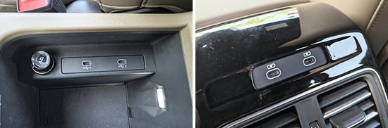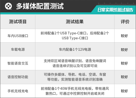 车内USB接口方面,评测车前排配备2个USB Type-C接口;后排同样配备2个USB Type-C接口,整体数量令人满意,不过接口类型相对单一。