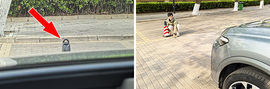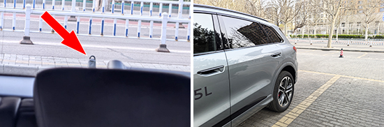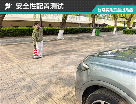 在测试前方视野环节,我们采用高70cm的桩桶作为参照物,随后调整车距,直至在主驾驶位可以看到桩桶上沿。经过测试,桩桶与车头最终测得的数据为3.262m,在测试过的同级别车型中处于中下游水平。