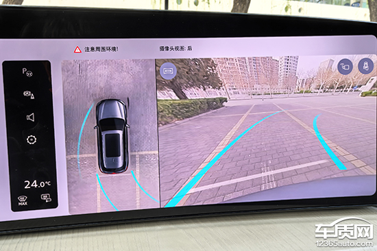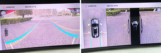 评测车选装了360度全景影像,画面清晰度和畸变控制都能令人满意。同时,该影像支持多角度查看,并提供可随动转向的倒车辅助线,帮助驾驶者更轻松地完成倒车入库等操作,实用性表现不错。