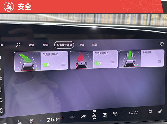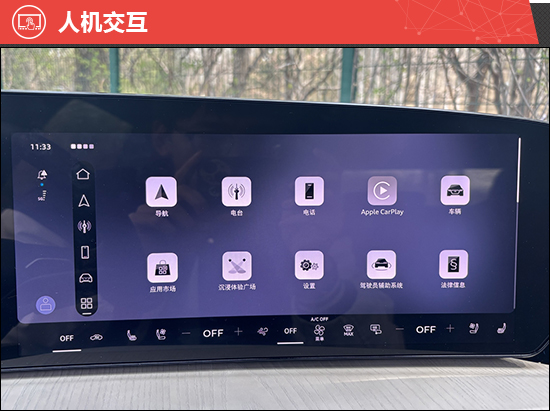 在内部感受评价中,评测车配备了由11.9英寸液晶仪表、14.5英寸中控屏和10.9英寸副驾娱乐屏组成三屏系统,显著提升了感官体验。后排座椅支持手动调节,可适应不同身材的乘客,但后排中央地台凸起过高,对中间乘客的乘坐舒适性影响较大。此外,前排座椅的加热、通风、按摩及记忆功能均需选装才能获得,与同级别车型相比存在一定差距。