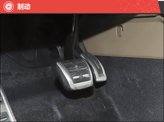 制动系统前半段存在小幅虚位,可以在制动时给予较高的宽容度,减轻驾驶压力。同时,刹车踏板反馈力度适中,制动力释放线性,符合家用车定位。