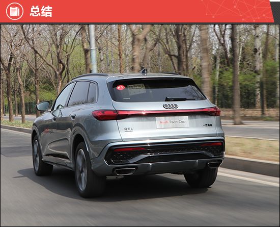 从以上各项测试结果可以得出结论,全新一汽奥迪Q5L在客观数据和主观感受方面的整体表现基本符合专家评审团预期。在客观数据层面,车内空气质量、操控系统、天窗以及后备厢等方面均有亮眼表现,而车身工艺和静态车内振动仍有较大的可优化空间。在主观感受层面,科技时尚的设计和全新混动系统都值得点赞,但与对手相比,配置水平还可以再进一步提升。综合来看,全新一汽奥迪Q5L的商品性表现在测试过的同级别车型中处于中下游水平。
