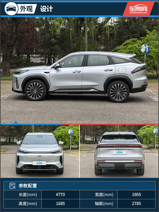 外观方面,评测车采用全新的家族化语言,整车从容大气,充满豪华风范。车头的飞檐虎视前脸设计灵感汲取自中式建筑,搭配下方梯形通风口,极具视觉冲击力。车身侧面线条凌厉动感,门板处上扬的腰线营造出俯冲的车身姿态,进一步提升运动气息。侧包围上方镀铬饰条的加入,也增添了几分高级感。车尾圆润饱满,旭日东升尾灯为贯穿风格,与头灯进行呼应,拉伸了车辆横向视觉宽度。