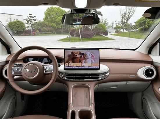 内饰属于五菱缤果家族的典型风格,简洁饱满的环抱式座舱,提供浅米棕与焦糖咖两种内饰配色,配备12.8英寸悬浮式中控大屏和8.8英寸内嵌式矩形仪表屏,并搭载灵语智能操作系统,支持灵语AI大模型、手车互联、影音娱乐等。