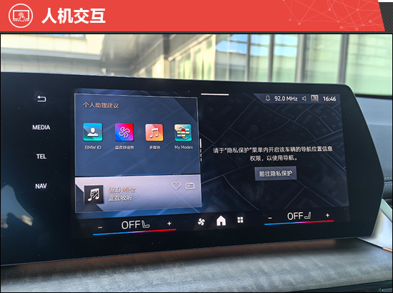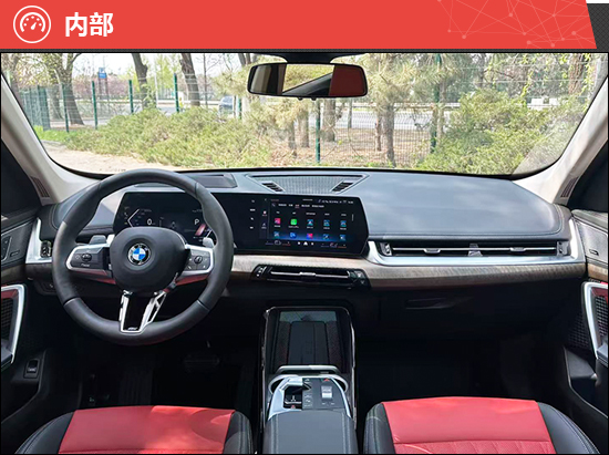 在内部感受评价中,2026款华晨宝马X1采用10.25英寸液晶仪表与10.7英寸中控屏组成的悬浮式曲面屏设计,屏幕角度向驾驶员一侧微微倾斜,便于操作。中控区域和门板采用大面积木纹装饰,搭配皮质面料以及精致的缝线工艺,彰显豪华质感。中控台下方提供斜向布局的手机无线充电板,底部还贴心设计了挡板,避免手机滑落。