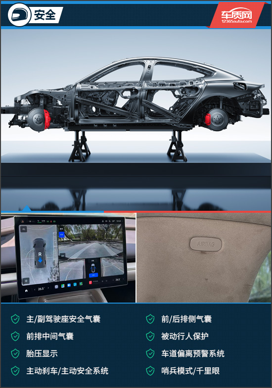 评测车全系标配了25项安全辅助功能,可有效减少对行人、车辆、障碍物的碰撞风险,全力守护每一次出行。同时,白车身采用钢铝混合结构打造,配合笼式设计与小米超强钢,打造了更扎实的车身防护基础。