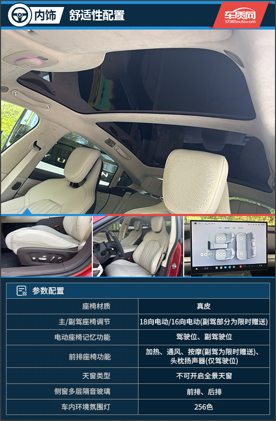 舒适配置方面,评测车前排座椅不仅功能丰富,主驾座椅主动侧翼支撑还进一步得到升级,支撑面积更大、响应速度更快,用车体验提升明显。不仅如此,其还加入了分区调光天幕,可分别对前后排的遮光度进行调节,相当人性化。此外,后排座垫填充增加20mm,触感更柔软;侧翼延长25mm,承托力更强,乘坐感受更佳。