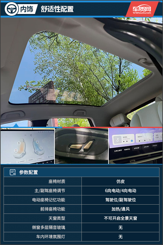 舒适性配置层面,舒适云感环抱座椅以人机工学为基底,辅以高密度发泡材质填充,久坐承托始终如一。头顶之上,2.34平方米全景天幕搭配电动遮阳帘,支持无级调节开合,既能让自然光肆意倾泻入舱,亦可在烈日当空时高效防晒,将通透视野与实用考量融于一身。