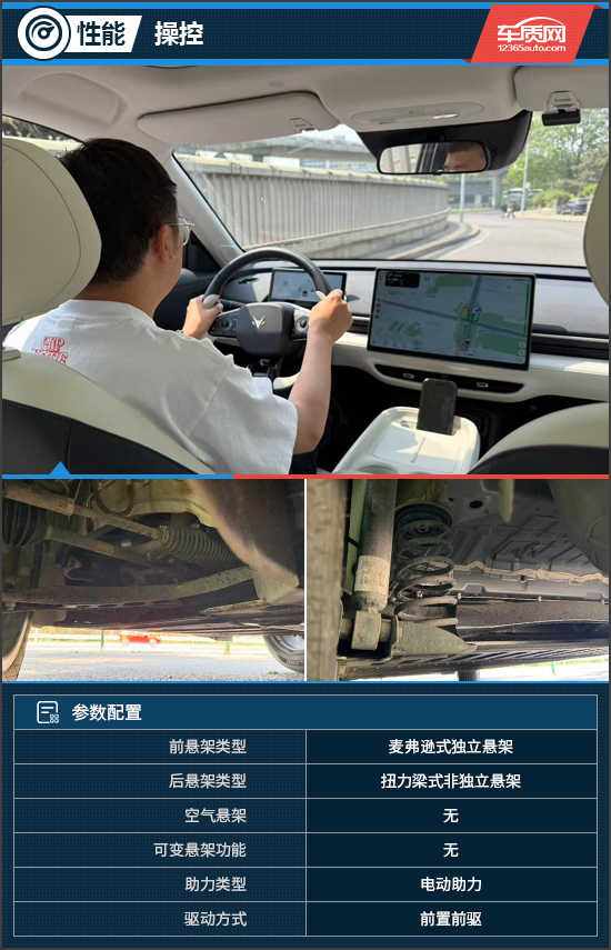 值得一提的是,评测车具备低速智能辅助转向技术,可在低速行驶时会对转向内侧车轮施加轻微制动并调整动力输出,配合14.9的转向比,转弯直径可减少30cm,最小转弯半径仅为5.2m。