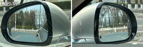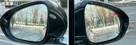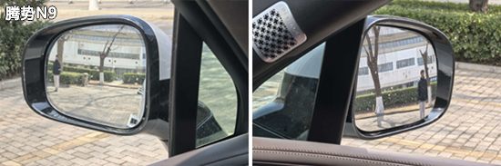 在外后视镜视野范围测试环节中,只有岚图泰山的两侧外后视镜采用双曲率镜片。然而在测试数据方面,腾势N9的整体表现最好,其两侧外后视镜视野均优于同级别车型测试均值。