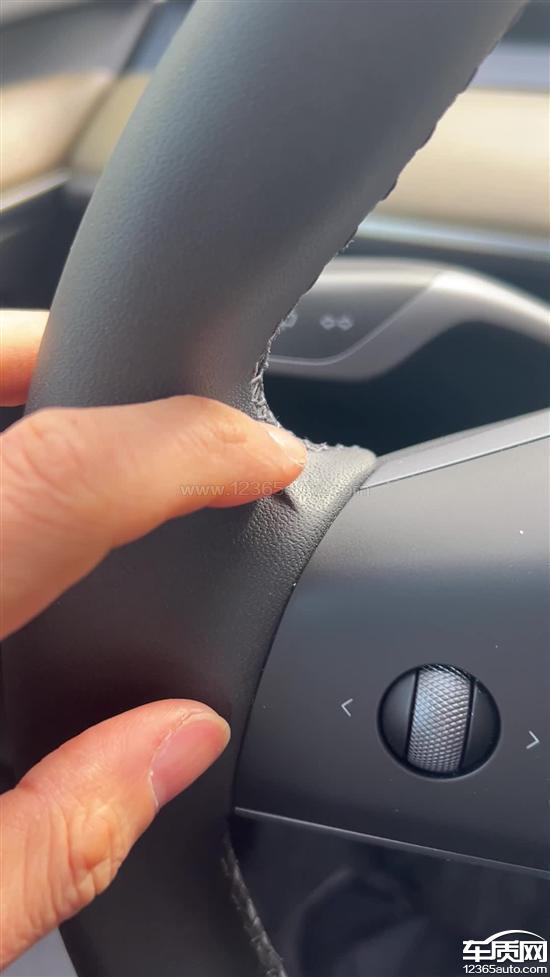 特斯拉Model Y车辆方向盘表面鼓包褶皱