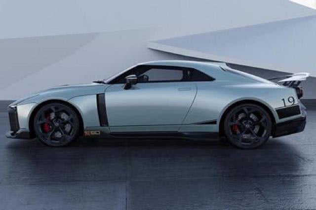 侧面线条简洁有力,从轮廓中很容易看出GT-R50和R35的相似之处,这便是一种战斗力的传承。车身底部依然是黑色富有设计感的空气动力学套件,前端的“50”字样,表达着这款车的纪念价值。