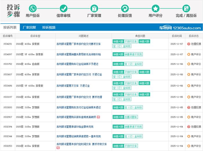 我在吉利汽车小程序上线上付了1000块钱。结果呢,厂家没办法按时交车,我就不想买这个牌子的车了。可这线上付的1000块钱,到现在都退不回来。我联系吉利官方,他们说让我找订车的4S店。4S店销售当时说180天会自动退款,可这都过去三百多天了,钱还是没退给我。