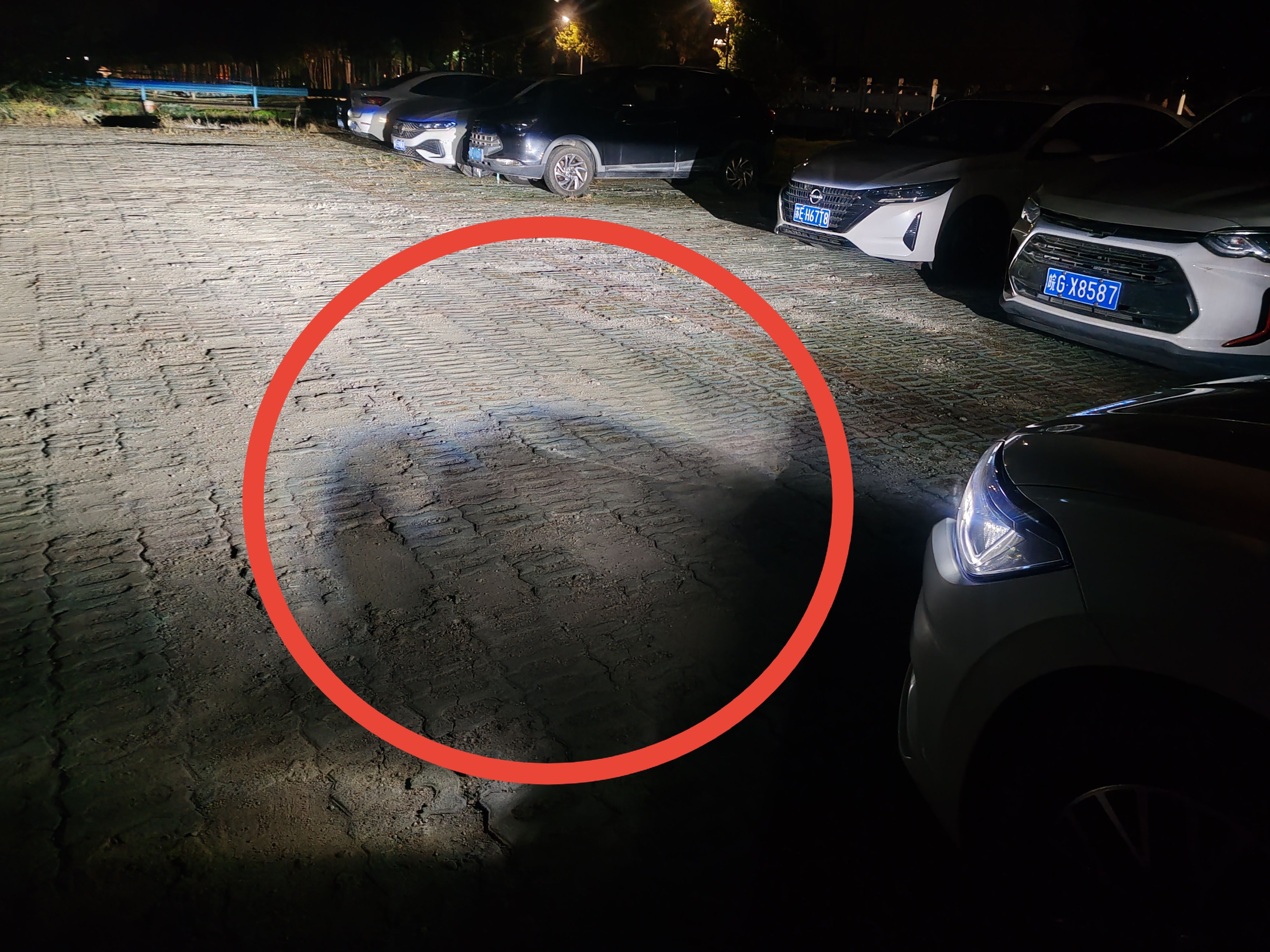 左大灯光线和右边对比有明显的阴影,分布不均匀