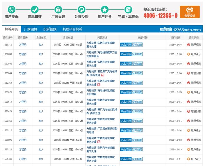 方程豹钛7车辆充电桩减配,方程豹品牌在未提前告知且未征得消费者同意的情况下,单方面变更了购车时承诺的原厂充电桩配置,涉及外观材质和核心功能的降低。减配的具体表现1. 观配置降级:宣传中强调的具有科技感和金属质感的外观,被替换为塑料感明显的材质,与购车时的宣传形象严重不符。2.核心功能缺失:被取消的功能包括4G联网和蓝牙连接,导致无法通过手机APP进行远程控制、查看充电状态等,核心使用体验与承诺存在本质差异。法律依据援引《中华人民共和国民法典》第509条,指出厂家在购车后单方面变更约定,未履行提前告知义务,属于单方面违约。同时,依据《消费者权益保护法》,经营者有义务真实、全面地提供商品信息,隐瞒配置变更可能构成误导消费,侵犯了消费者的公平交易权。同样的问题在车质网上已经有不少车友反馈。核心诉求1.要求厂家按照购车时宣传的配置,为其安装原款充电桩。2.若无法更换,则应按减配功能的市场价进行足额补偿。