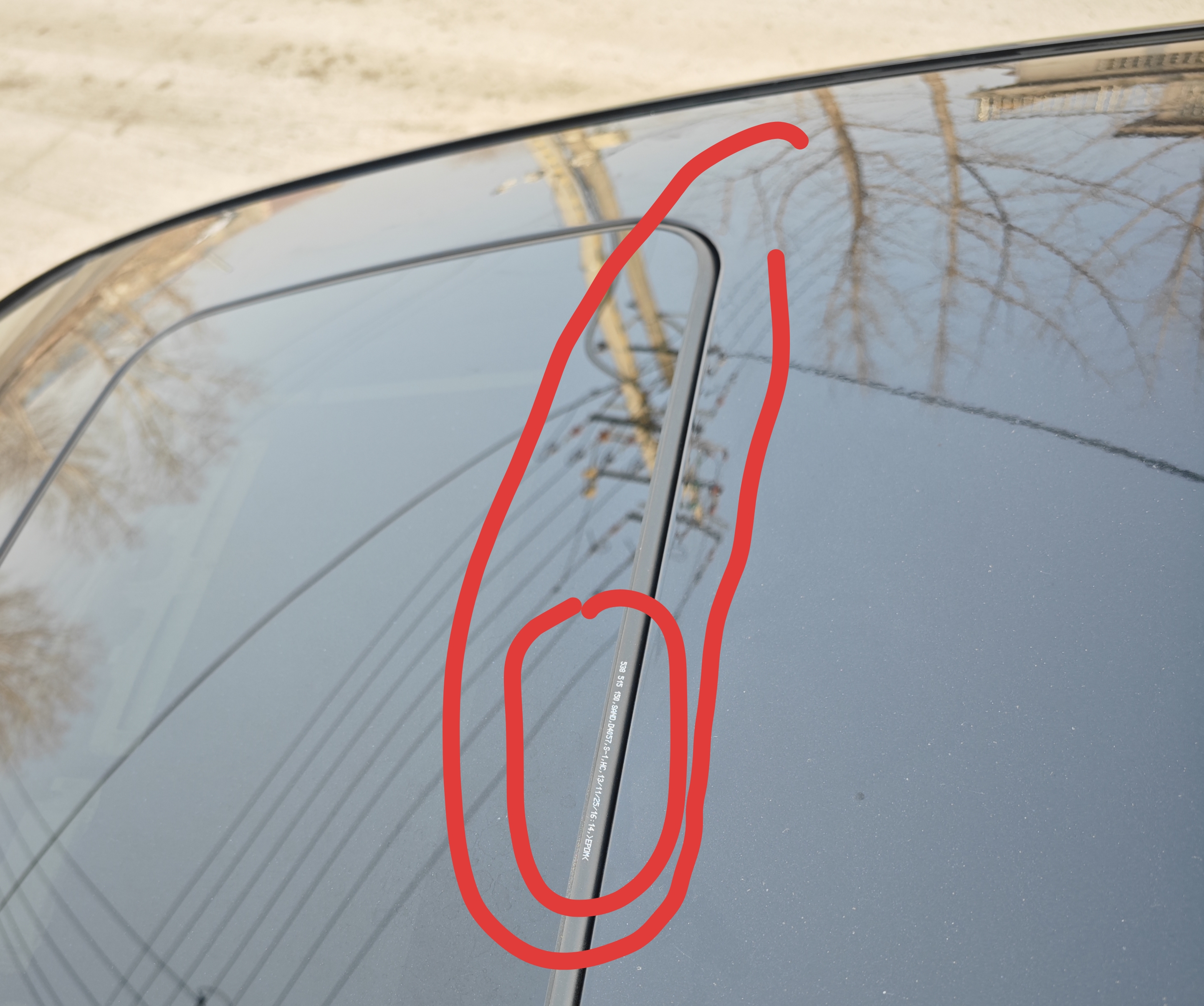 君威天窗漏风,在4s店更换天窗胶条。竟然能给装反了编码字母面在外面