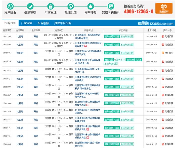 比亚迪海豹OTA升级哨兵模式承诺不兑现,购车前,比亚迪官方通过宣传材料、销售人员及官方渠道明确承诺该车型将通过后续OTA(空中升级)更新开放“哨兵模式“功能。该功能作为车辆安全与智能化的重要卖点,直接影响了我购买此款车型的决策。然而,自提车至今已超过两年,比亚迪未通过任何OTA升级为海豹DM-i旗舰版提供哨兵模式,且未就此事项向车主做出任何正式说明或补偿方案。期间,本人多次通过比亚迪官方客服、4S店等渠道咨询,均未获得明确升级时间表或解决方案,仅得到“请耐心等待“等模糊答复。此类问题从关注车质网中了解到已经有不少车友反馈,希望厂家能够重视处理。