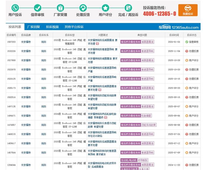 反馈福特锐际后减震漏油的情况挺多的,希望最后能给出一个合理的解决方案吧