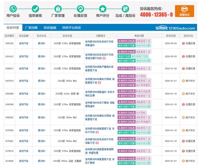 吉利银河E8续航严重缩水续航里程不准,自提车以来,车辆标准续航575km,夏季高速打开空调只能跑300公里左右,市内夏季开空调只能跑到250左右,目前处于冬季,当地平均温度5度左右,驾驶车辆不开空调能跑300公里左右,开空调只能达到200左右,尤其是前几日大雪零下8度的时候,开空调行驶只能达到150公里左右的续航,早上最为明显! 我向4s店反应过,给我的答复是:”由于动力电池材料的特性,电池会随着温度变化工作效率发生变化,气温越低,电池的活性越低(阻抗变大),可放出电量变少,所以早上启动那会,短距离的耗能会大一些。行驶一段距离后,耗能会降低一些。”但是就算长时间驾驶消耗还是一样。 后来我说想要电池数据,4S店就让我签授权书,我没签,随后发给我一个别人提取过的数据示例,完全看不出来电耗的情况,所以我也就没说提取数据的事,但是4S店再也就没过问我的车辆续航问题了,他们以为我接受了,我绝对不接受这种解释。同样的问题从关注车质网中了解到有不少车友在反馈,希望厂家能够给一个说法。