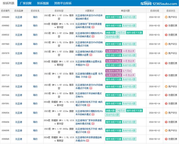 比亚迪海豹旗舰版,因车辆摄像头存在问题,无法更新哨兵模式,至今未收到厂家任何答复。大量车主投诉维权,要求厂家处理。