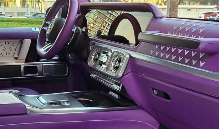 该车还配备了24寸定制轮毂,与定制宽体套件相得益彰,宽体上的碳纤维还采用了紫色点缀,瞬间提升了车身侧面的视觉观感。同时,带“Mastodon”字母标识的侧踏板、Venuum定制后视镜外壳以及Venuum品牌标识套装,都在细节处彰显着这款车的定制身份。而这款Venuum V3与G63最大的区别就是前后车灯的重新定制设计,还加入了定制灯条及优化转向灯设计,而且还设计了高位和低位的倒车灯,这独特的灯光效果在夜间点亮时极具辨识度,既提升了行车安全性,又为车辆增添了更多科技感与个性化元素。