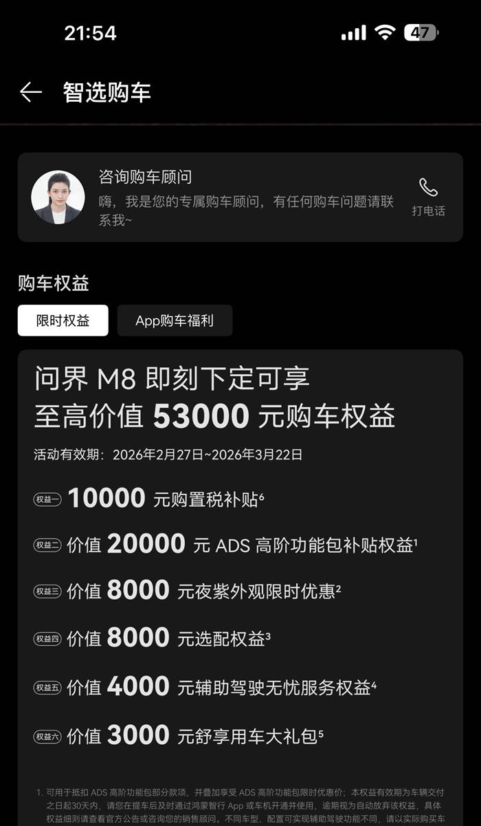 本次1万元购置税补贴政策于2月27日正式上线,而2月原有购车权益明确3月2日才到期,新政策在未提前公示、未设置过渡期、未给老用户兜底的情况下突然发布,直接导致财产损失,权益受损。已在车质网进行反馈,希望可以有个满意的解决方案。