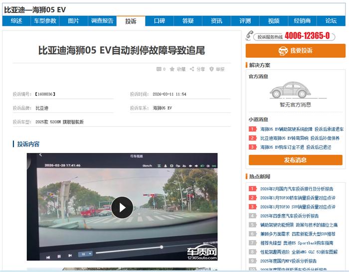 比亚迪海狮05 EV的自动刹车功能存在局限性。车质网数据显示,有车主反馈其主动刹车过于敏感,倒车时离障碍物较远便触发急刹,影响体验;也有车主因AEB未识别静止物体(如树木)导致事故,质疑其实用性。不过,该功能在“鬼探头”等场景下能及时介入制动,避免碰撞,说明其具备一定安全价值,但技术边界和宣传话术需更透明。