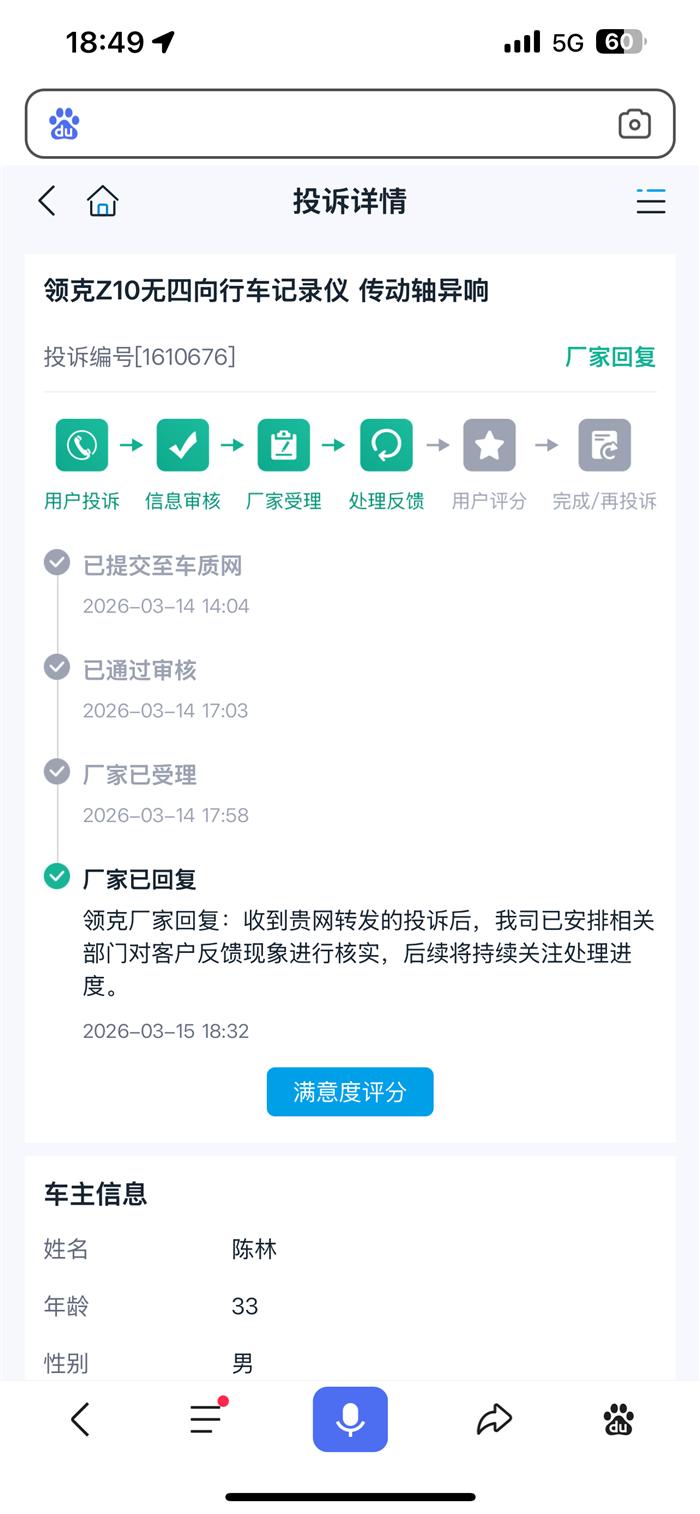 投诉后一个电话都没有就处理完毕。领克真牛皮!