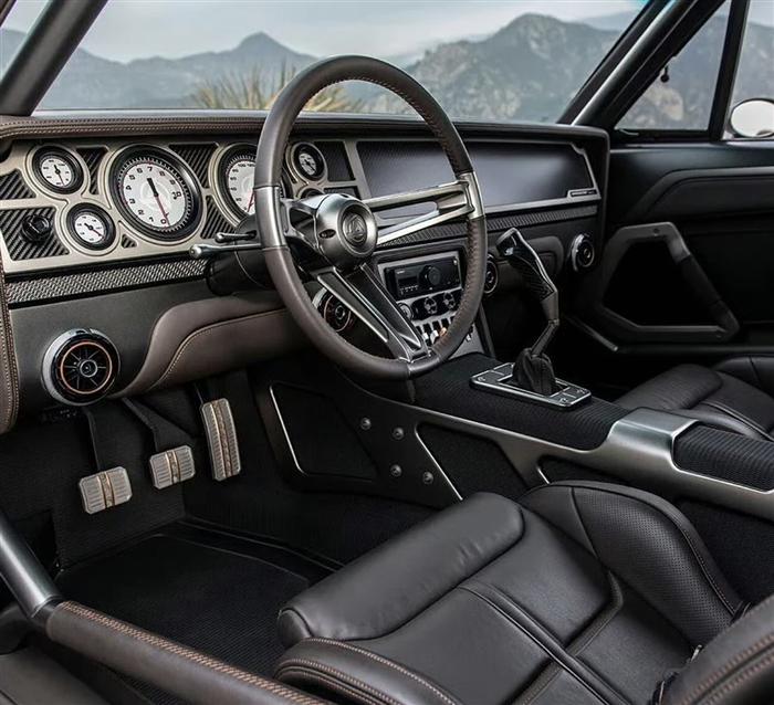 真正的硬核改装,从来不是修补,而是重塑。这台经典车壳之下,换装了来自Demon的6.2L HEMI V8机械增压发动机。铸铁进气歧管被高流量铝合金部件取代,原本偏向舒适取向的凸轮轴升级为激进的竞技规格,排气系统从三元催化到尾段全面打通,让动力释放更加直接。