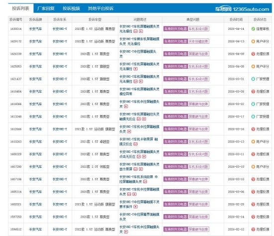 长安UNI-T 2020款车主,购车后行驶4万余公里,车机触控屏在2025年末出现局部失灵,2026年5月彻底失效,空调、导航等核心功能无法操作。4S店以“过质保期”为由拒绝免费维修,更换总成报价4500元。车质网平台显示,该故障集中爆发于2020-2021款车型,疑似批次性设计缺陷。