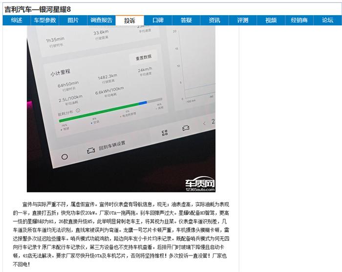 吉利银河星耀8实车功能与宣传严重不符,针对智驾和车机系统,首先,星耀8顶配版本具备激光雷达,但由于吉利系统内部产品更新问题,未能享受技术红利,智驾系统及车机系统均落后于更低价格的银河A7甚至后来新出的星耀6,其次,星耀8车型,车机芯片与新款新出的诸多车型如A7,星耀6,甚至新款星耀8一致,均为龙鹰一号,但车机系统却迟迟不统一,明明具备升级的硬件基础,但吉利内部软件优化团队未能保持一致。姑针对这两项问题提出诉求,对于智驾系统,推出升级服务或ota优化,针对车机软件,统一升级同一版本的flymeauto车机系统。除此之外,针对发布会上宣传的,HUD功能存在与实际不符,宣传中实现的小地图以及导航等并未实现,明明具备很大一块儿HUD空间,但是右边部分几乎没有任何显示内容,同样的问题从关注车质网中了解到有不少车友反馈,针对这些问题希望尽快优化解决。