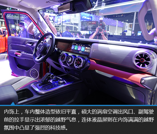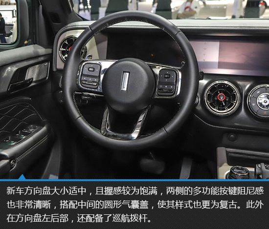 相比于外观的粗犷,内饰在延续外部特点的同时,丰富的配置和充足的用料也让自身展现出应有的豪华气质。另外,多种路况选择、手动分动箱以及三把差速锁等诸多越野配置,让我们在户外探索穿越时的表现也更加从容。