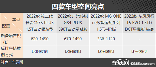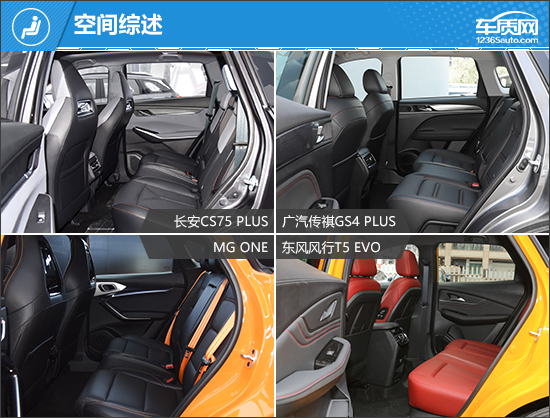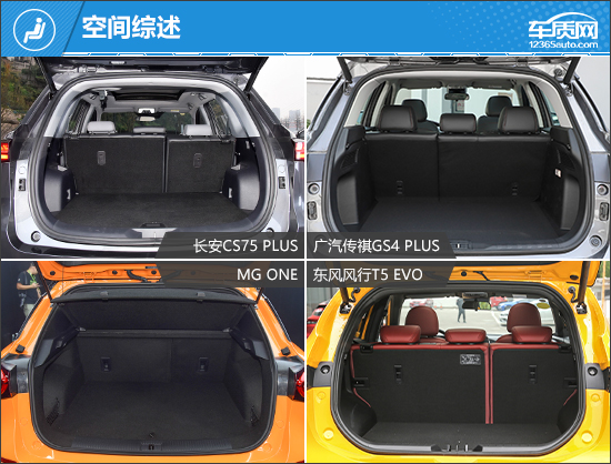 后备厢空间部分,长安CS75 PLUS和广汽传祺GS4 PLUS在容积参数方面相差不大,而MG ONE则明显要小了很多。可能是受限于溜背的外观设计,所以才被迫牺牲了一定的后备厢空间,看来追求美真的就要付出代价。东风风行T5 EVO未公布后备厢容积参数,因此无法进行对比,不过目测来看,应该会比MG ONE略大一些。