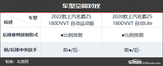 由于2022款名爵ZS并未针对内饰布局进行任何调整,且车身尺寸参数也完全与2020款车型保持一致,因此两款车型的空间表现并无差异。前/后排乘坐及储物空间均处于同级别主流水平,后排座椅采用比例放倒形式,能够进一步拓展后备厢的使用空间。作为一款小型SUV,满足日常使用并无太大压力,整体表现可圈可点。