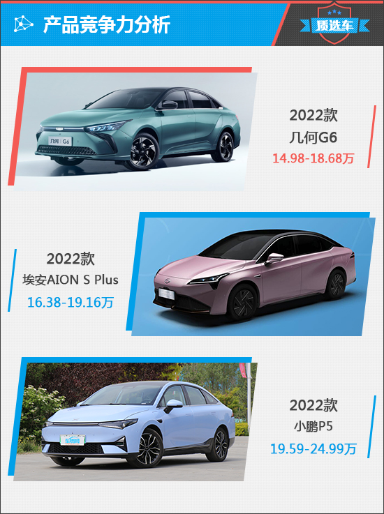 动力系统方面,三款车型均为前置前驱单电机,动力参数相差不大。其中,2022款几何G6搭载了来自宁德时代的53kWh和70kWh三元锂电池组,CLTC综合续航里程分别为480km和620km;埃安AION S Plus搭载了58.8kWh和69.9kWh的三元锂电池组,NEDC综合续航里程为510km和602km;小鹏P5搭载了多种容量和类型的电池组,NEDC综合续航里程分别为450km/460km/510km/550km/600km。从参数上来看,无疑是几何G6高续航版本的表现最佳。