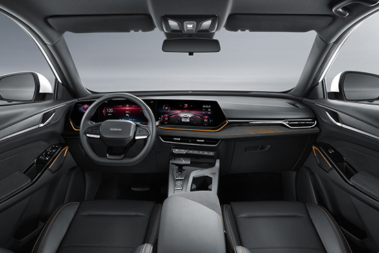车内布局方面与现款车型相同,平直的中控台设计令其有着不错的层次感,贯穿式的空调出风口也提升了车内的档次与精致感。配置方面,新车配备了10.25英寸悬浮式中控屏并内置GKUI系统,支持OTA升级、车载WIFI、车联网、倒车影像等功能,与此同时全液晶仪表盘依旧为全系标配诚意十足。