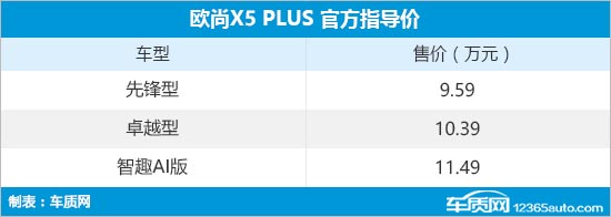 12月9日,车质网从长安欧尚官方获悉,长安欧尚X5 PLUS正式上市,新车共推出3款车型,售价区间为9.59-11.49万元。新车定位为紧凑型SUV,采用运动化造型设计,动力部分搭载新一代蓝鲸NE 1.5T发动机。