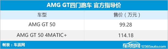 12月8日,我们从梅赛德斯-奔驰官网获悉,新款梅赛德斯-AMG GT四门跑车正式上市,新车本次共推出两款车型,分别是AMG GT 50和AMG GT 50 4MATIC+,其售价为99.28万元和114.18万元。