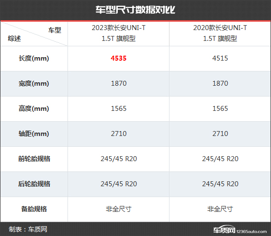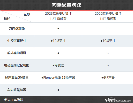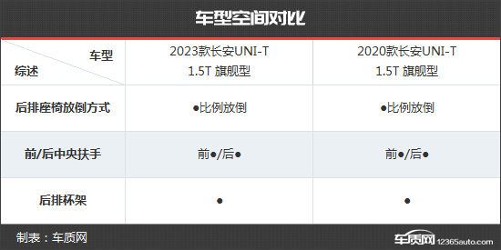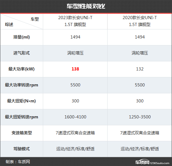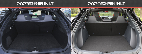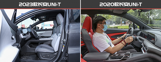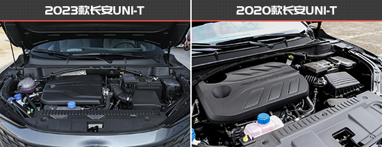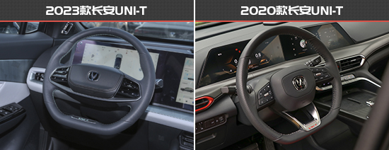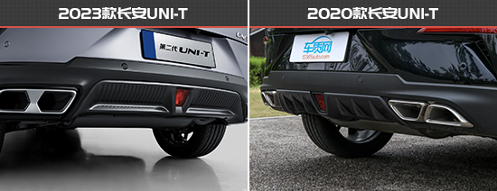 2023款长安UNI-T作为中期改款车型,对设计、配置以及动力进行了调整,虽然依旧全系标配1.5T发动机+7速湿式双离合变速箱的动力组合,但最大马力提升了8Ps。同时,新车售价区间小幅上涨,并增加了两款运动版车型,配备更加激进的外观套件。由于2020款车型在设计和配置方面与2022款车型基本一致,所以本次进行对比车型为2023款长安UNI-T 1.5T旗舰型和2020款长安UNI-T 1.5T旗舰型,两款车型价格一致,对比时更能直观地体现出差异。