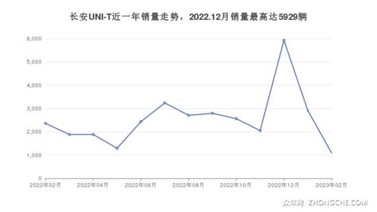 具体来看,该车型的车主,平均成交价在11.89-12.09万之间,销量方面,长安UNI-T,在2023年02月份的销量为1086辆,近一年长安UNI-T的,累计销量达到33136辆。