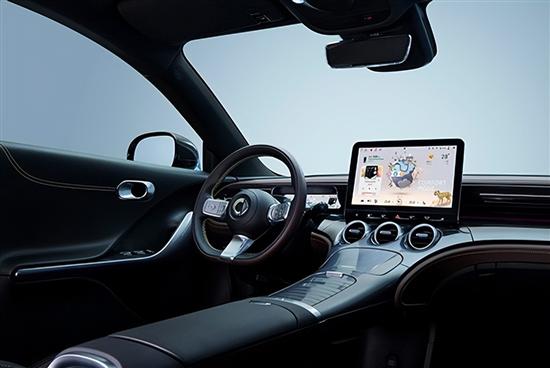 内饰方面,新车与smart精灵#1保持高度一致,“T”字形中控布局非常熟悉。新车中控屏尺寸为12.8英寸,内部将搭载“灵感星球”smart OS全场景数字生态车机系统,芯片来自于高通骁龙8155。此外,新车也将搭载精灵助手Avatar,该形象拥有72种精灵3D动画效果,语音唤醒时间仅需280毫秒。